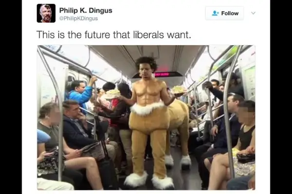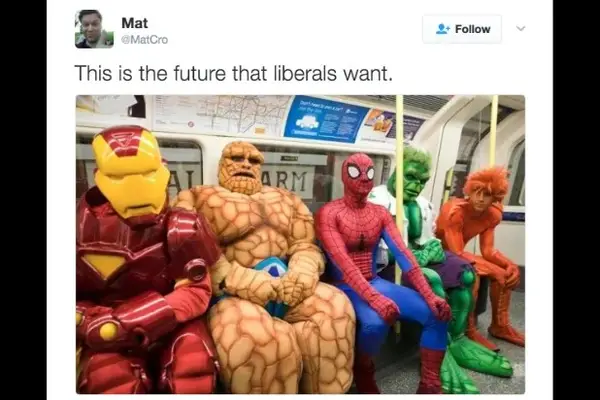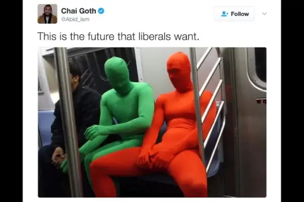 Otro día, otro meme. El miércoles, un usuario de Twitter tuiteó una foto de dos personas en el metro y subtituló con esto es el futuro que los liberales quieren, intentando criticarla.