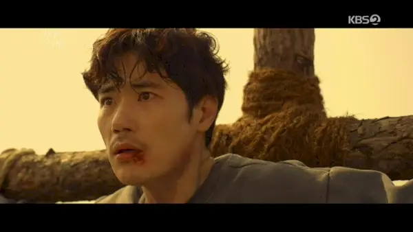 Cuando finalmente le quitan la bolsa, Tae-woo se encuentra colgado de una cruz en medio de la nada, recibido por algunas caras hostiles y un agujero claramente destinado a ser su tumba. Uno de sus captores da un paso adelante y pregunta: ¿Dónde está?