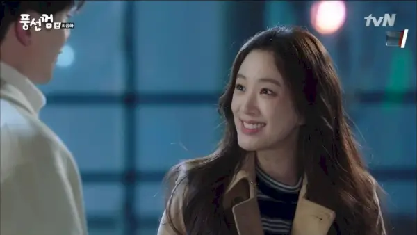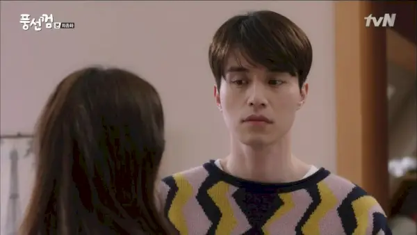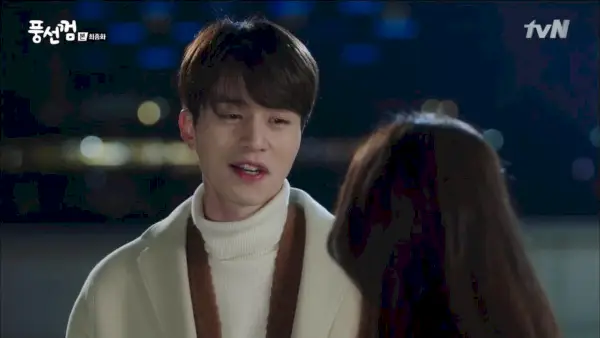 Compra una bolsa enorme de bocadillos que intenta dársela a Yi-seul, riéndose cuando ella tiene miedo de ganar peso. Él la llama curvilínea, lo que le pone los pelos de punta, y ella le grita que es bajo. Y luego se pregunta por qué es tan sensible, porque la gente bonita no suele ser insegura, y se burla de ella para sacarla de su mal humor. Está bien, es adorable.