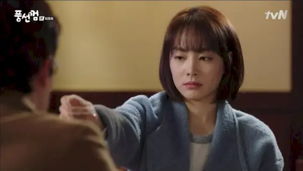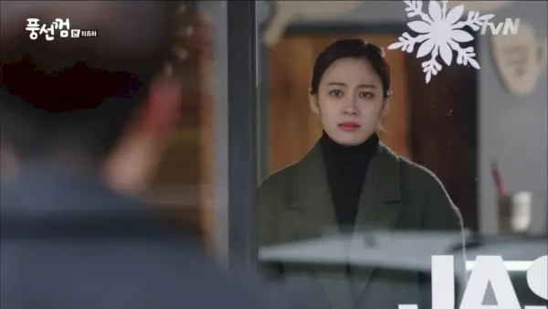 Después de que todos los demás se van, Ji-hoon le bromea a Tae-hee diciéndole que están aquí frente a la estación de policía por tercera vez. A este paso, empezará a alegrarse con sólo ver un coche de policía. Tae-hee sonríe ante eso y la invita a comer. Ella se da vuelta para alejarse, luego se vuelve: ¿No vienes?