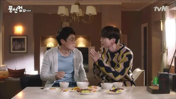 Incluso hacen piedra, papel o tijera para ver quién tiene que comérselo, y Ri-hwan pierde, solo para que Haeng-ah vuelva a llenar el cuenco de Ji-hoon, ja. Ri-hwan literalmente escupe cuando Haeng-ah promete cocinar para ellos todos los días una vez que regrese al departamento del tercer piso.