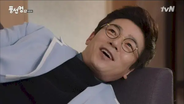 Suk-joon mastica y escupe a un invitado de su programa, acusándolo de fraude fiscal al aire. El manager Jo tiene que pedirle que se lo tome con más calma o nadie querrá venir al programa.