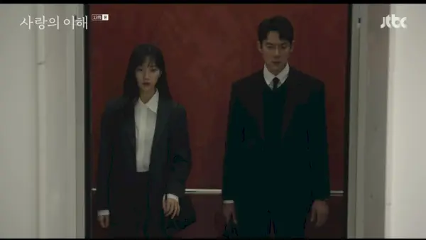 Sin embargo, Sang-soo no responde de la manera que Soo-young había imaginado. La primera vez que se encuentran después de la gran revelación (en un ascensor, hablando de tiempo), él simplemente le pregunta cómo fue su entrevista en la sede. Luego se enoja con él por ser tan indiferente y no cuestionarla como lo hacen todos los demás. (Quiero decir, elija un bando, señora). La respuesta de Sang-soo es, por supuesto, comprensible. Tiene miedo de hacer preguntas porque no quiere perderla (se aferra a un idea de ella, como señala Kyung-pil).