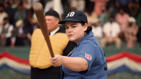 Rosie O'Donnell incluso aparece más adelante en el programa como un personaje totalmente diferente que habla de la lente expansiva del programa de televisión. Miembros de la familia, amigos, prometidos y más alegría de los jugadores de pelota en los cuatro equipos en el Medio Oeste en este show de 1943.