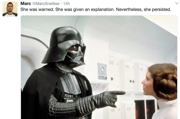 Bonificación: los fanáticos de Star Wars también se metieron en el meme. Si fuiste a la Marcha de las Mujeres de Los Ángeles, viste muchas señales con la Princesa Leia. Y ella continúa persistiendo.
