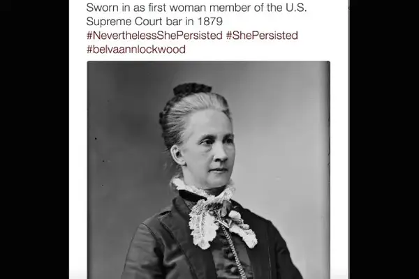 Esta imagen es de Belva Ann Lockwood, la primera mujer permitió practicar ante la Corte Suprema de los Estados Unidos.