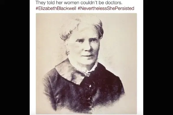 Aquí está Elizabeth Blackwell, la primera mujer en los Estados Unidos en recibir un título de médico.