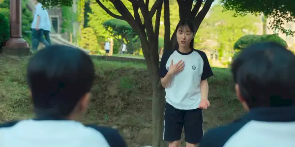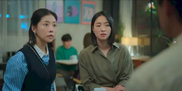 Antes de este momento, no estaba completamente convencido de la interpretación de Jeon Yeo-bin de Joon-hee, ya que parecía que estaba canalizando una versión atenuada de su personaje de Vicente , pero ella me conquistó cuando su personaje dejó caer la fachada enmascarando su dolor, dejando que su tristeza y esperanza chocaran en este momento. A Ahn Hyo-seop también le fue bien en esta escena, congelándose torpemente y dejando que sus manos flotaran cerca de Joon-hee/Min-joo, claramente inseguro de si era apropiado consolarla con un abrazo.