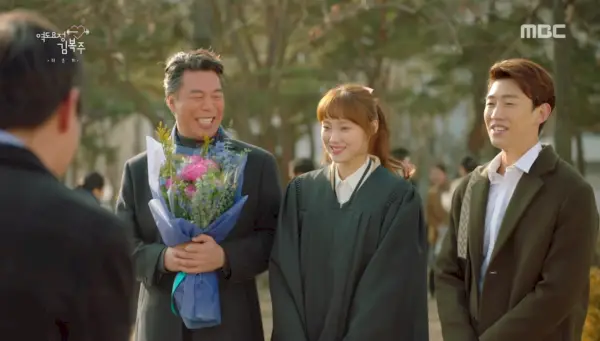 Después de la ceremonia de graduación, Bok-ju y Joon-hyung se presentan formalmente a sus familias, aunque aparentemente se han estado enviando pollo frito y vitaminas a través de los niños desde hace un tiempo. Jae-yi se burla diciendo que se siente como una reunión de suegros, y Bok-ju lo felicita a él y al Dr. Go por fijar la fecha de la boda.